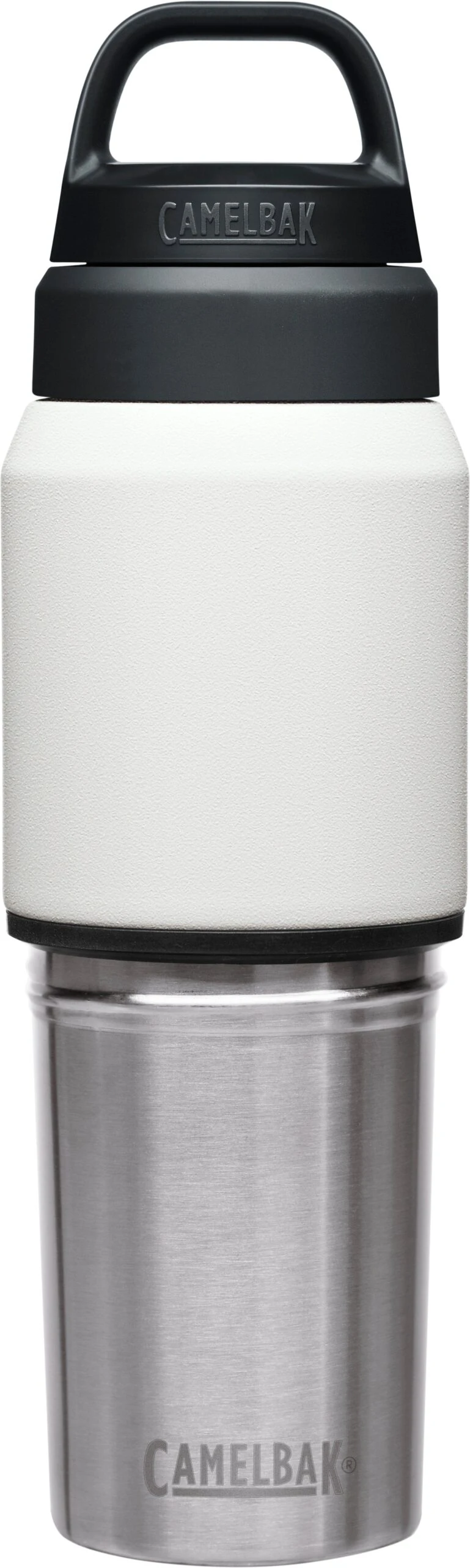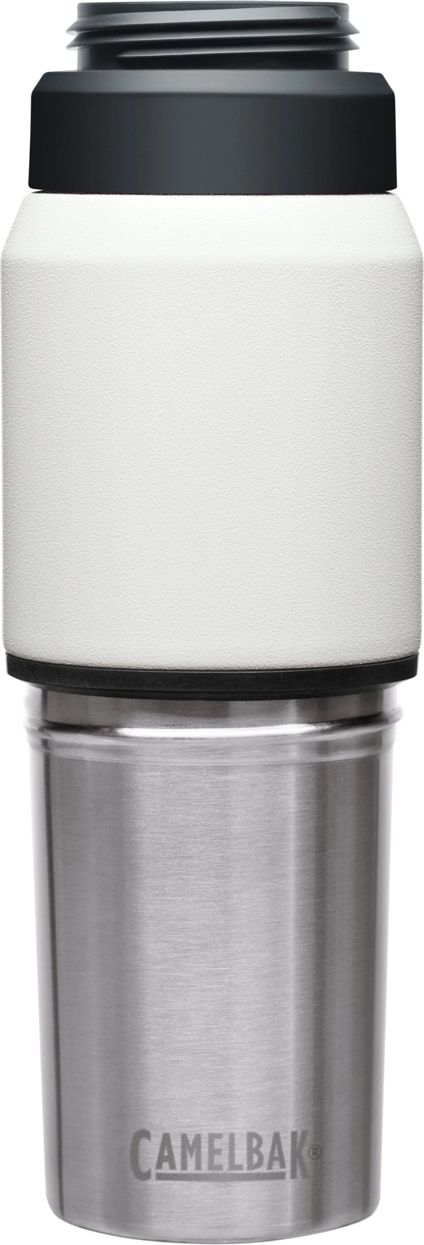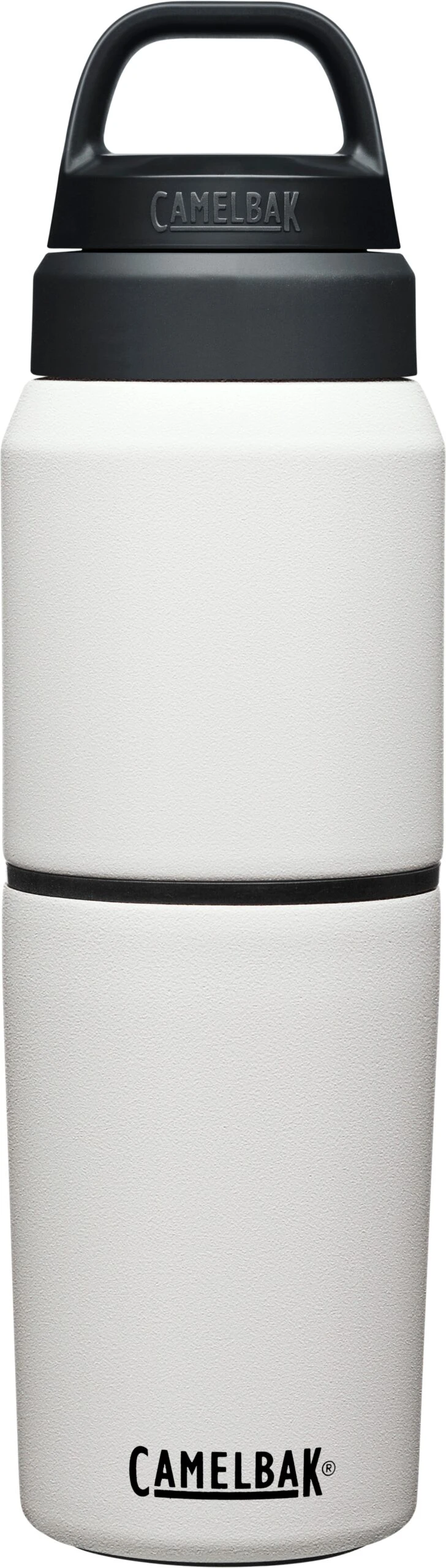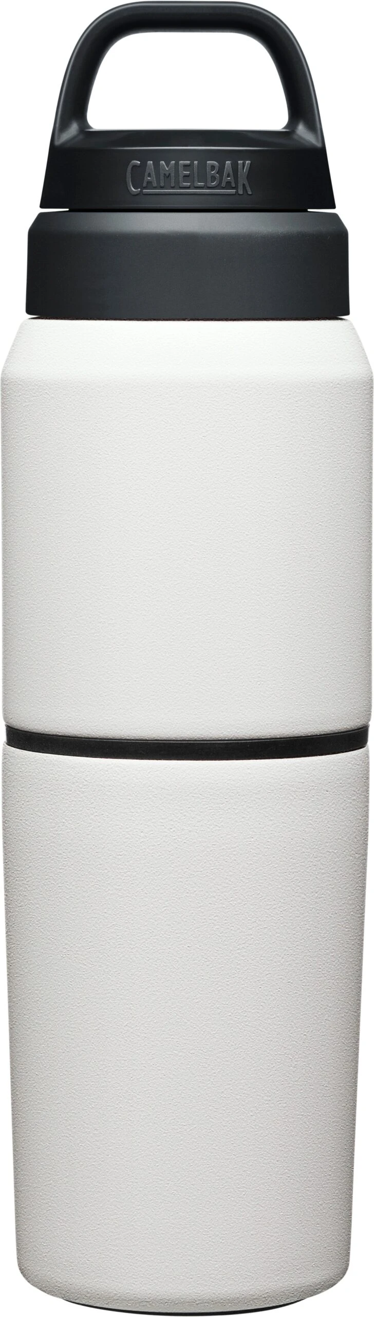 The Camelbak Multibev 17 oz/12 oz, is the ultimate beverage multitasker. Featuring a 17 oz water bottle with a detachable 12 oz travel cup, the Multibev is perfect for both solo and shared enjoyment of coffee and tea.Â
