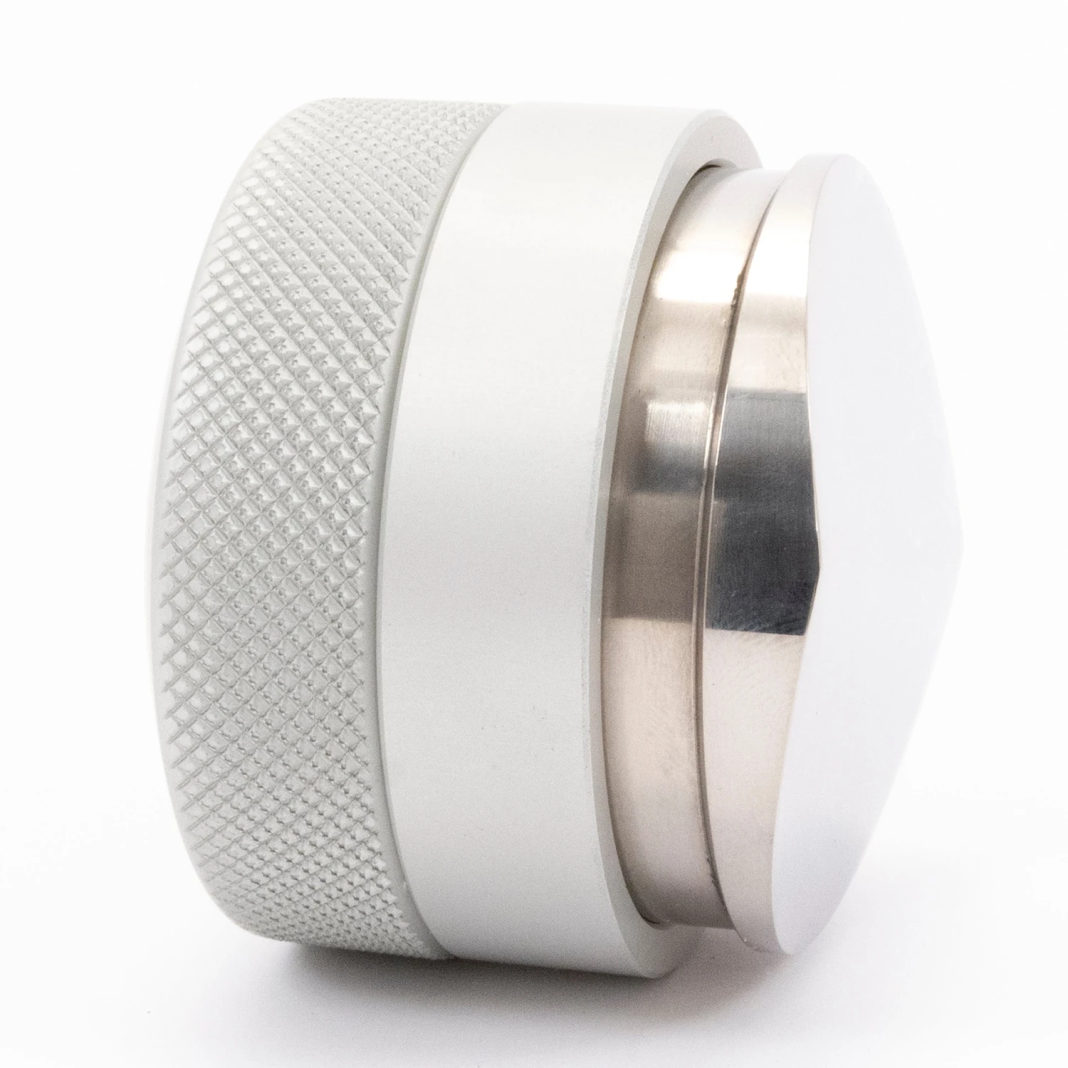 To polish and distribute you coffee, simply place the distributor on top of your freshly ground coffee in the portafilter and twist clockwise. You have will have a perfectly distributed puck of coffee that is ready to be tamped.