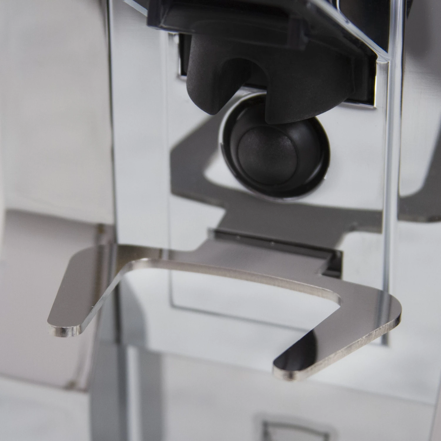 For performance, it’s equipped with 50 mm flat hardened steel burrs and a strong 1350 RPM motor. Eureka’s ACE system helps prevent clumping by eliminating static in ground coffee, which in turn ensures dose consistency.