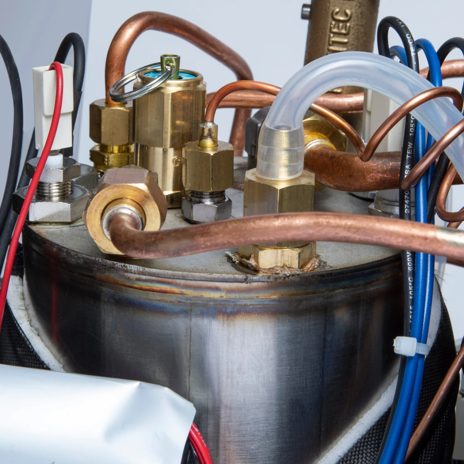 The 1.6-liter stainless steel boiler on the Pro 400Â With Flow Control is made of stainless steel, which allows for a durable heating element that will evenly heat up for your morning brew. The heat exchanger boiler can brew and steam at the same time, and you can also quickly and easily dispense hot water through the separate hot water wand.