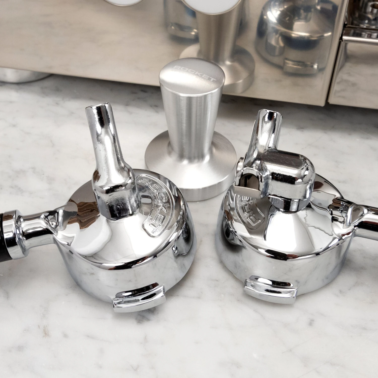 As a heat exchanger, the Appartamento can brew and steam at the same time, so there isn’t any downtime between brewing and steaming or multiple milk-based drinks. An E61 group head keeps the brew water temperature stable, by syphoning water from the boiler, through the group, and back, to ensure a consistent temp throughout. Rocket redesigned their E61 to incorporate a dual pre-infusion system, which consists of a static pre-infusion chamber and a mechanical element that has a progressively working piston, resulting in aromatic, crema-rich extractions. This machine is beauty and brains wrapped up into one.