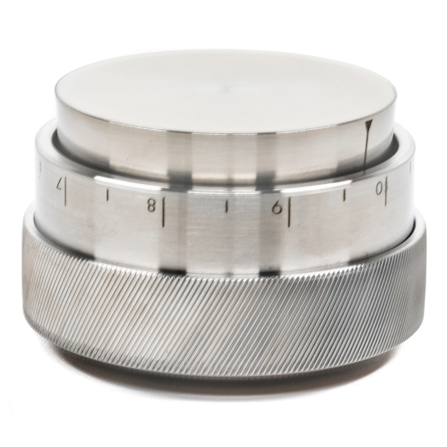 The New Levy Precision Espresso Tamping Tool makes consistent brewing easy! Simply determine your shot’s dose, whether that be 16g or 18g, and then adjust the tool’s depth accordingly. The New Levy has a diameter that is an extra .3mm thicker, meaning it has less space in the basket and will tamp more evenly.