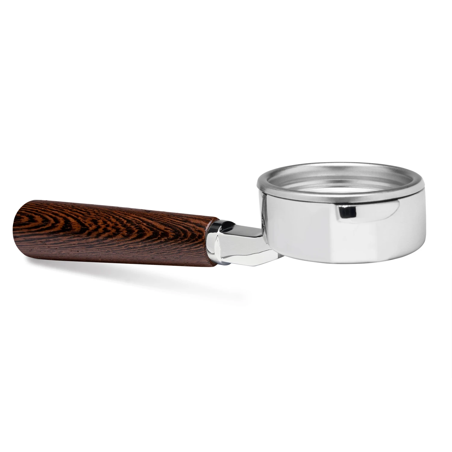 This bottomless portafilter for the Gaggia Classic features an ethically sourced wenge wood handle that was crafted in the United States. The filter head is made from brilliantly polished chrome-plated brass and imported from Italy. Each portafilter is assembled by hand in our machine prep facility in Rochester, NY. As a natural product, no two wood pieces are exactly the same and the appearance of the handle you receive will vary slightly from what is shown on this page.